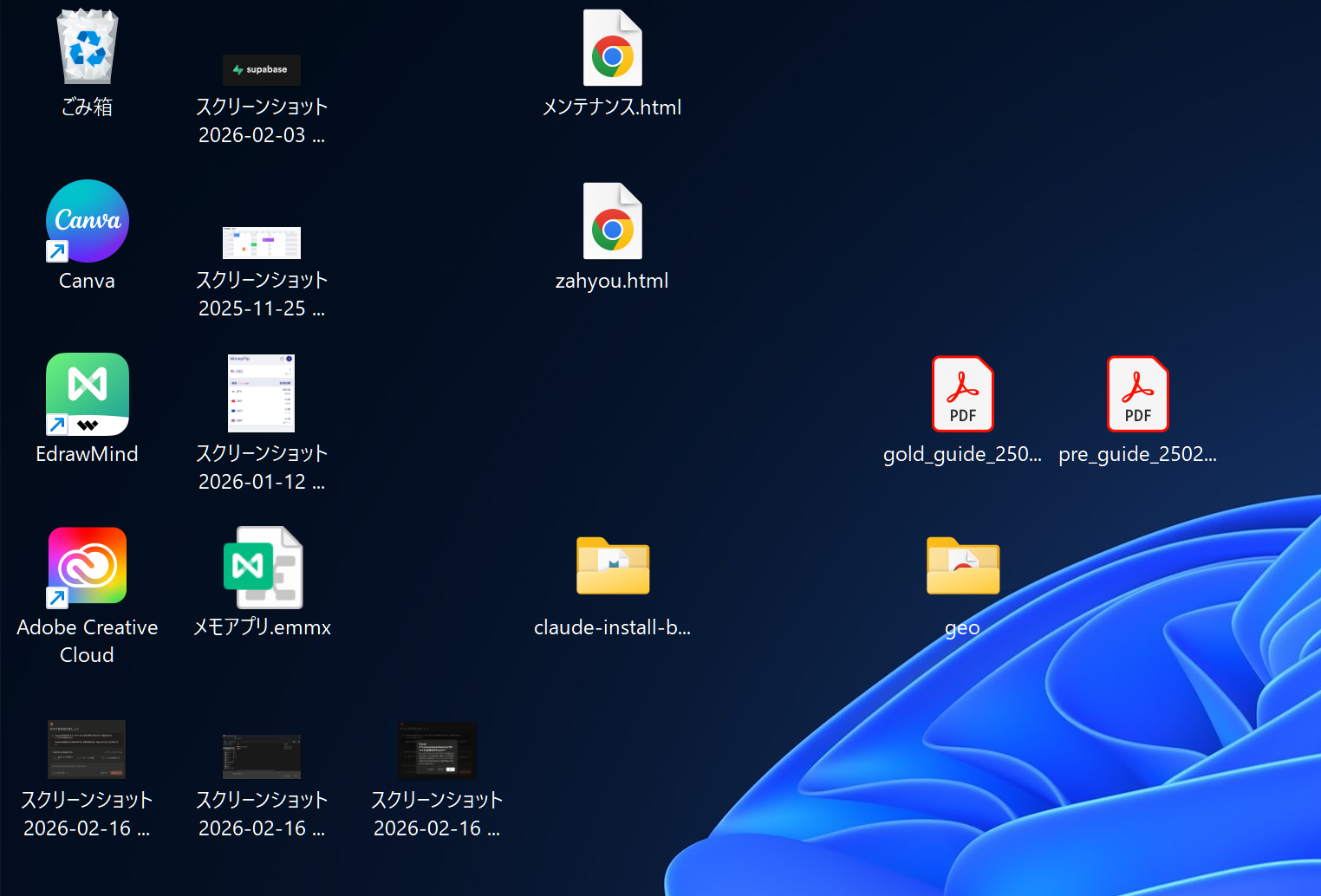 スクリーンショットが「スクリーンショット」フォルダにまとまり、デスクトップがすっきりしました。