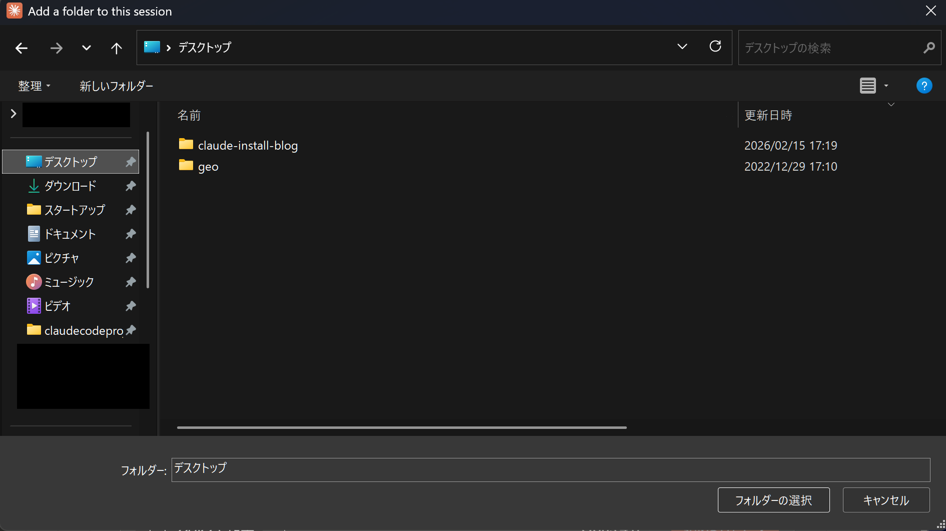 今回はデスクトップを選びました。選択すると、ファイルの読み書き権限を求めるダイアログが出ます。