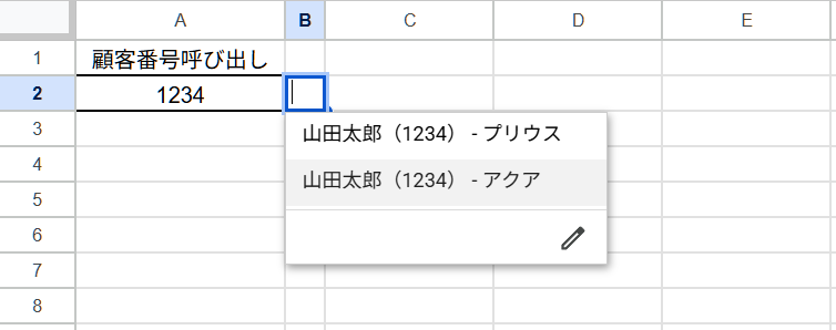 - B2に該当顧客のプルダウンが自動で出現